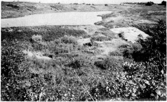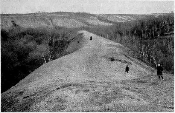 At the west edge of these deltas is the wooded Pembina escarpment, where the elevation increases as much as three hundred feet or more. An escarpment has been described as a "one-sided hill." Once you have climbed to the top of this "hill," you arrive on a plateau or plain and there is no "down-hill" on the other side.