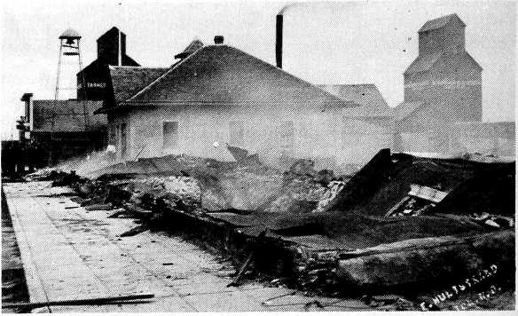 In addition to uprooting trees, downing power and telephone lines and scattering hay stacks, several plate- glass windows were broken in Milton business places. Buildings sustaining damage in Milton included the cement-block building, Club Billiard hall, Green’s hardware, Robertsons Lumber Co., Farmer’s Union Elevator, Styrvocky’s blacksmith shop, the Lutheran church, the building owned by the Plain estate west of the Lutheran church and the Milton Globe office. Many residences including the Green and Asgrimson homes lost shingles and chimneys.