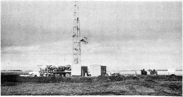 The Milton area experienced a flurry of activity in regard to oil exploration during the 1950s. Although western Cavalier County had more "wildcat’ wells drilled, the Milton area had its share of activity. A former state geologist at one time pin-pointed an "anti-cline" running from northwest to southeast in Montrose Township. With formations such as Niobrara shale "pinching out" or surfacing in the Pembina Hills area, the oil companies were perhaps spurred on to explore by the thought of discovering shallow production, which is more profitable than deep drilling, as well as the possibility of finding pockets of "trapped oil." Although it is doubtful if any seismic testing was done in the Milton area, there was some testing done by flying over areas with a testing device which supposedly enabled the operators to prepare maps which would show areas of potential production.